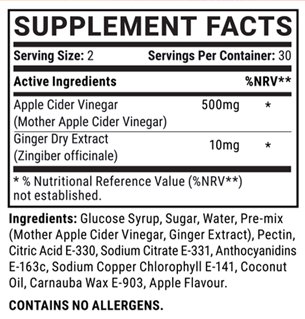 Apfelessig liefert Essigsäure – in Studien wird u. a. ein Beitrag zu Sättigung und Ernährungsbewusstsein diskutiert; Ergebnisse sind heterogen und nicht als Heilaussage zu verstehen. Ingwer-Extrakt ist traditionell für Küchen- und Wohlfühlaspekte bekannt; Forschungsarbeiten untersuchen u. a. Thermogenese und subjektives Hungergefühl. Die Gummies kommen ohne Gelatine aus, sind leicht einzunehmen und fügen sich unkompliziert in Routinen ein. (Zutaten laut Herstellerseite.)